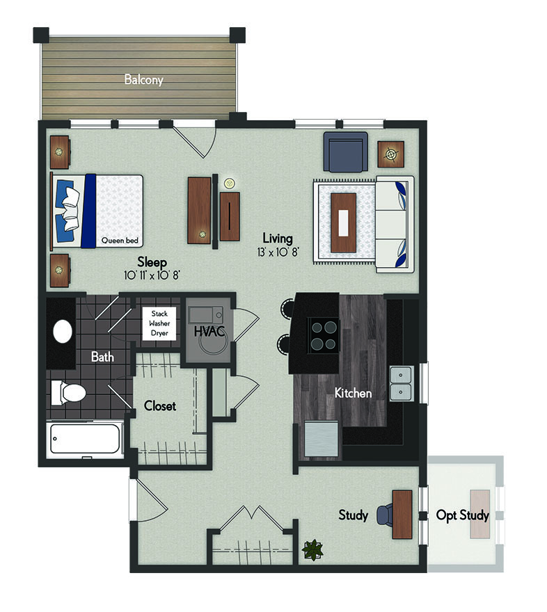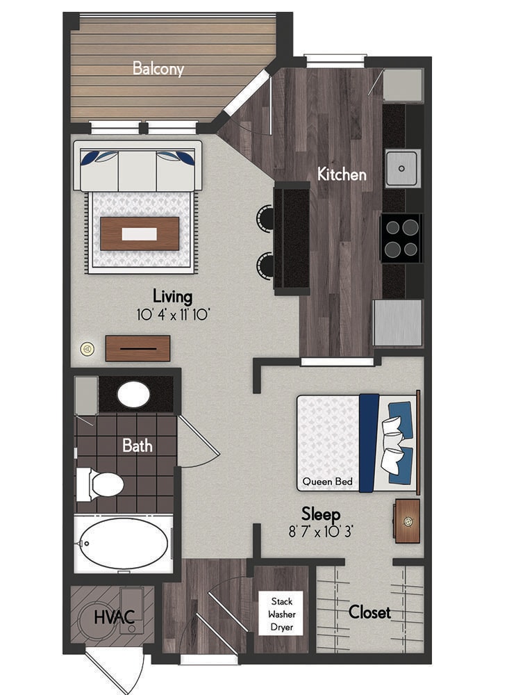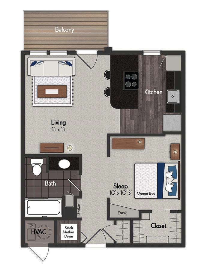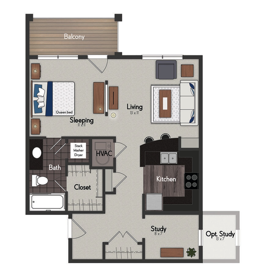 Studio, 1 Bath, 694-732 sq ftModel Gallery