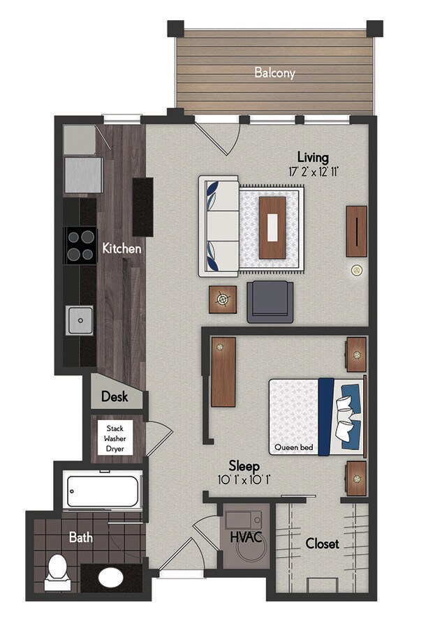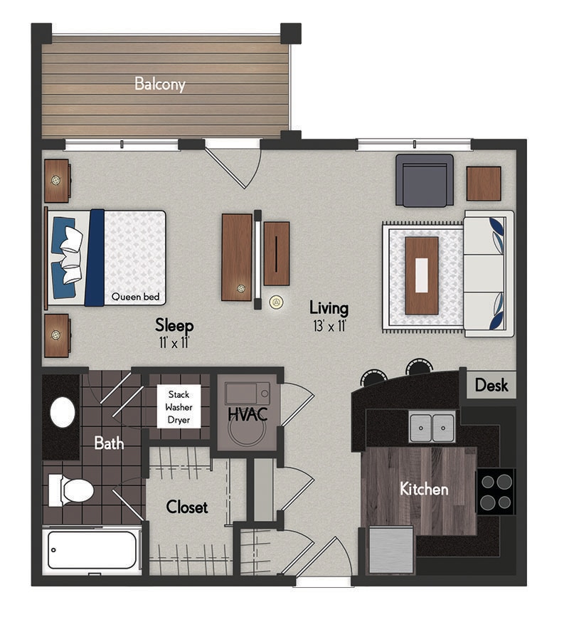 Studio, 1 Bath, 601 sq ftModel Gallery