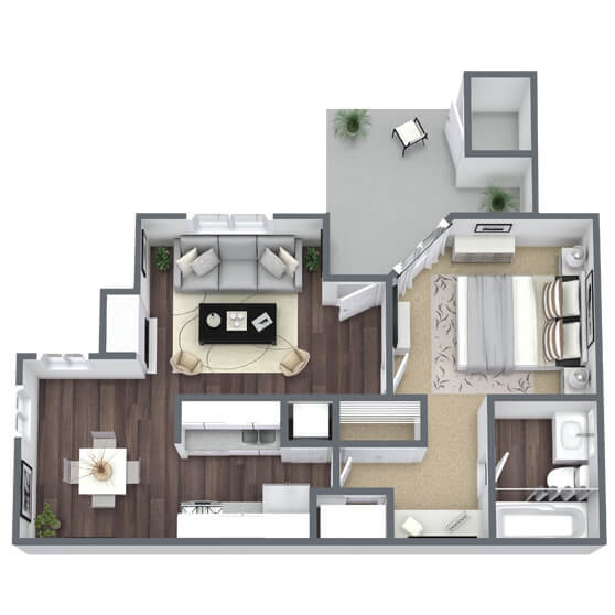 1 Bed, 1 Bath, 614 sq ftAvailable NowModel Gallery