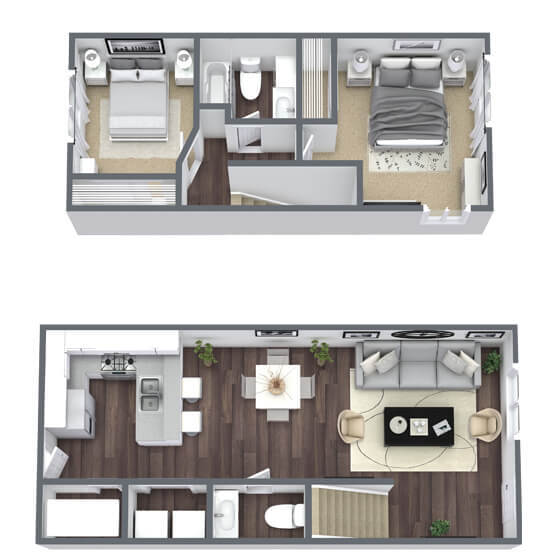 2 Beds, 1.5 Baths, 896 sq ftAvailable NowModel Gallery