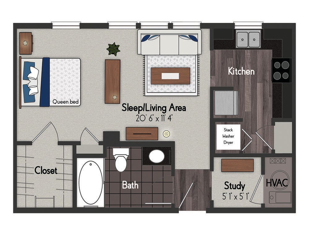 Studio, 1 Bath, 667 sq ftModel Gallery