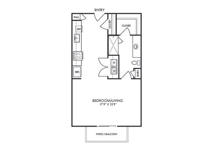 Apartment Model: A1Studio, 1 Bath, 620 sq ftUnavailableA1 - Floorplan 1 1 Bedroom