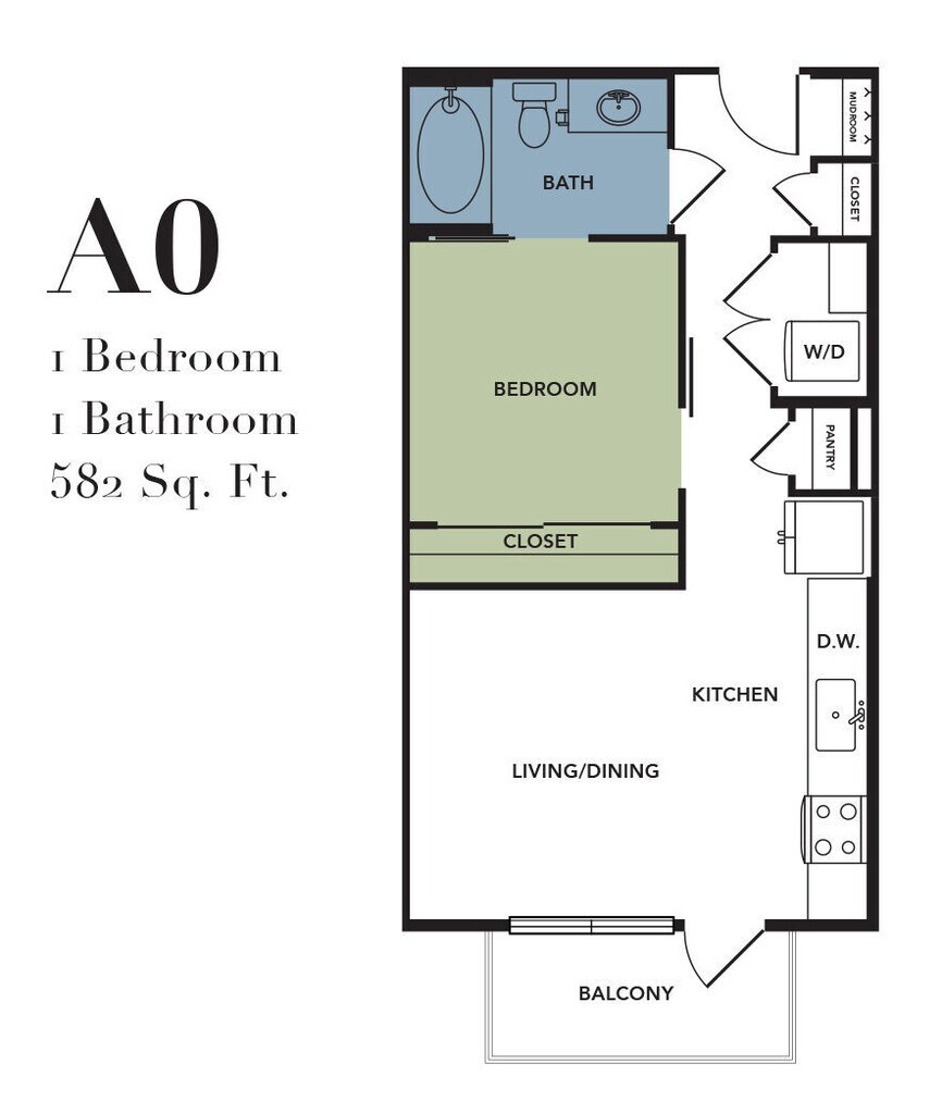 Apartment Model: A0From $1,044Studio, 1 Bath, 582 sq ftAvailable NowFloor plans are artist's rendering. All dimensions are approximate. Actual product and specifications may vary in dimension or detail. Not all features are available in every rental home. Prices and availability are subject to change. Base rent is based on monthly frequency. Additional fees may apply, such as but not limited to package delivery, trash, water, amenities, etc. Deposits vary. Please see a representative for details.