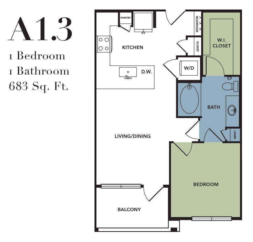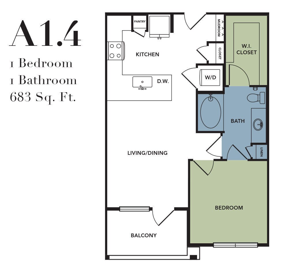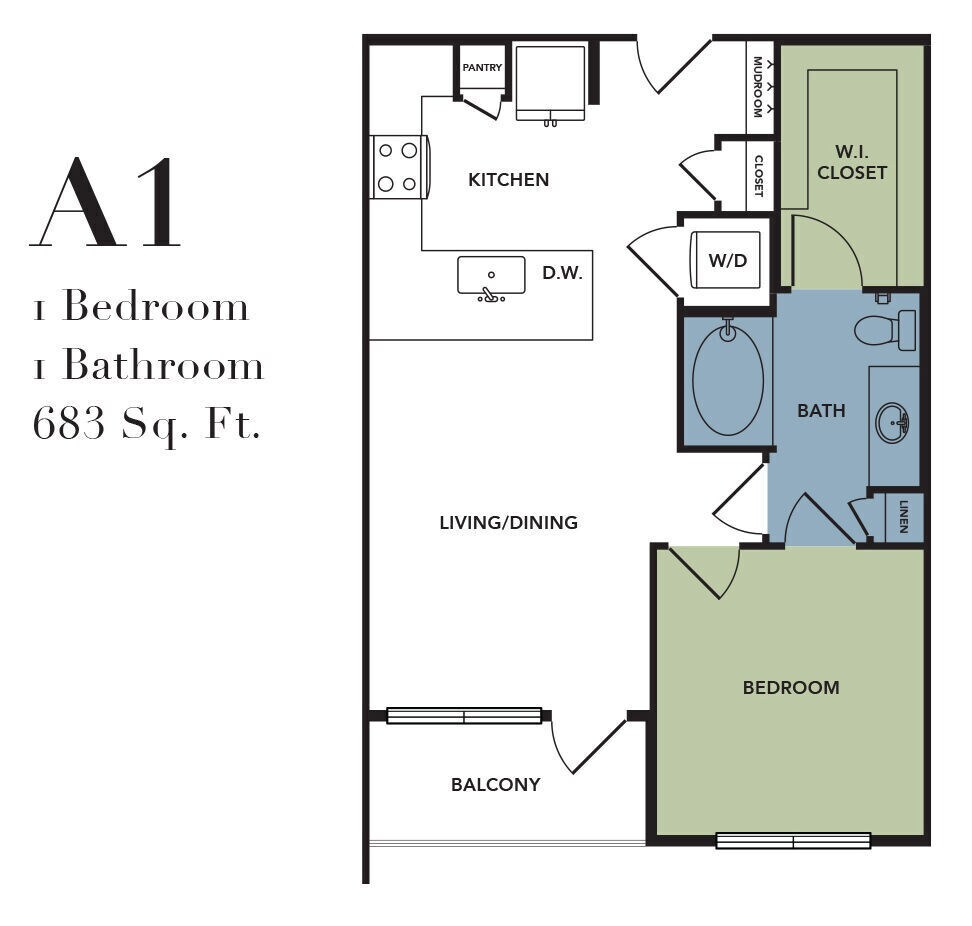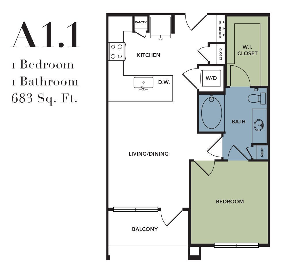 Apartment Model: A1.1From $1,1441 Bedroom, 1 Bath, 683 sq ftAvailable November 29, 2025Floor plans are artist's rendering. All dimensions are approximate. Actual product and specifications may vary in dimension or detail. Not all features are available in every rental home. Prices and availability are subject to change. Base rent is based on monthly frequency. Additional fees may apply, such as but not limited to package delivery, trash, water, amenities, etc. Deposits vary. Please see a representative for details.