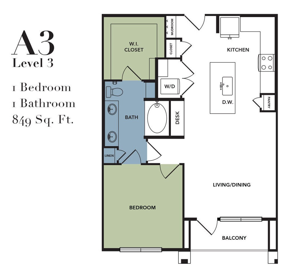 Studio, 1 Bath, 582 sq ftModel Gallery