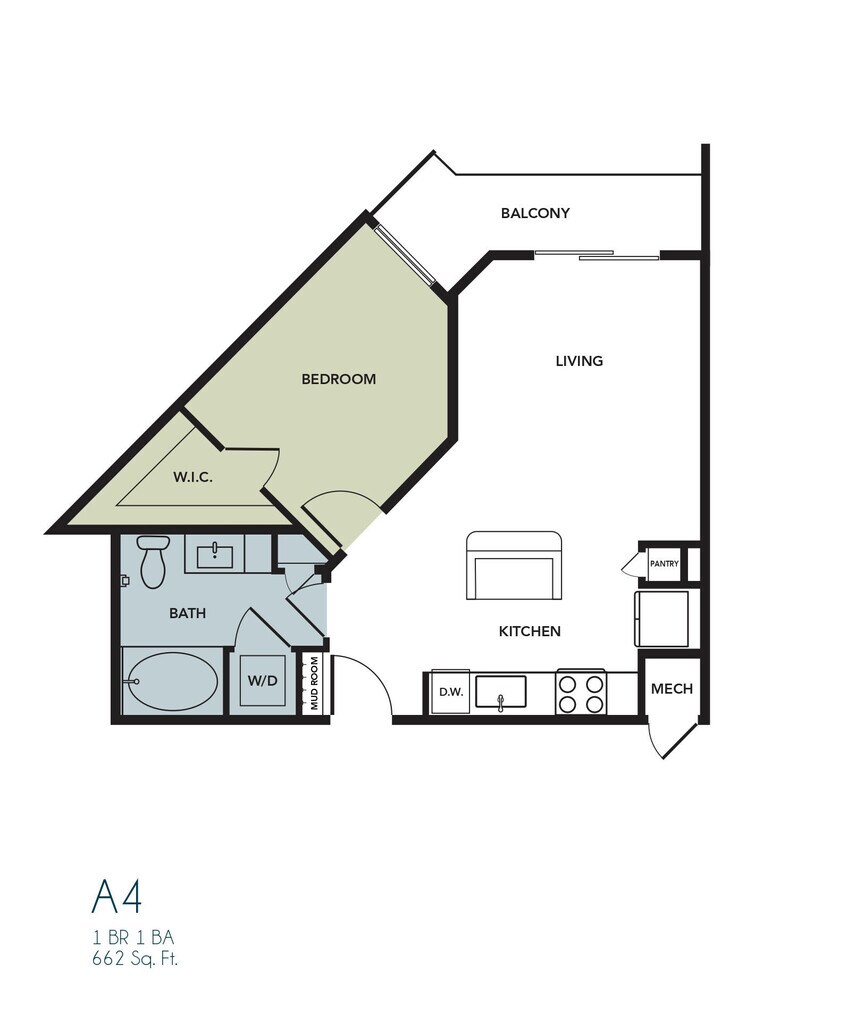 Apartment Model: A5From $1,3991 Bedroom, 1 Bath, 724 sq ftAvailable NowFloor plans are artist's rendering. All dimensions are approximate. Actual product and specifications may vary in dimension or detail. Not all features are available in every rental home. Prices and availability are subject to change. Base rent is based on monthly frequency. Additional fees may apply, such as but not limited to package delivery, trash, water, amenities, etc. Deposits vary. Please see a representative for details.