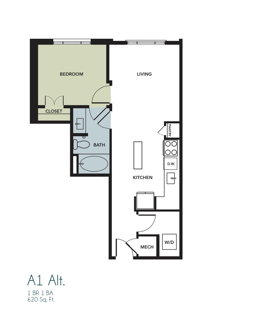 1 Bed, 1 Bath, 620 sq ftAvailable NowModel Gallery