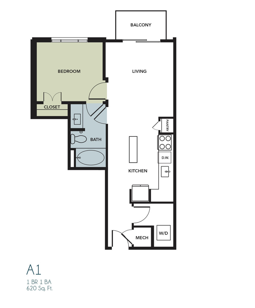 Apartment Model: A1From $1,3551 Bedroom, 1 Bath, 620 sq ftAvailable NowFloor plans are artist's rendering. All dimensions are approximate. Actual product and specifications may vary in dimension or detail. Not all features are available in every rental home. Prices and availability are subject to change. Base rent is based on monthly frequency. Additional fees may apply, such as but not limited to package delivery, trash, water, amenities, etc. Deposits vary. Please see a representative for details.