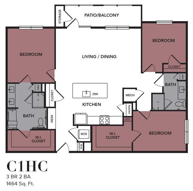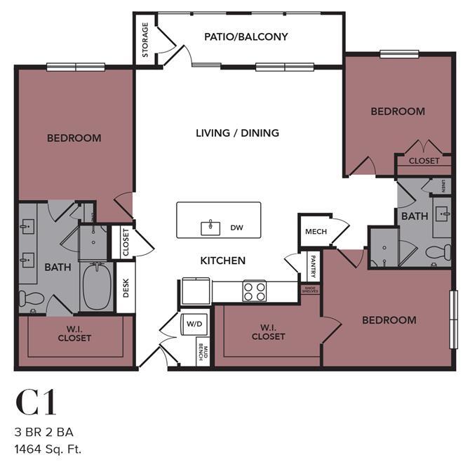 1 Bed, 1 Bath, 884 sq ftAvailable NowModel Gallery
