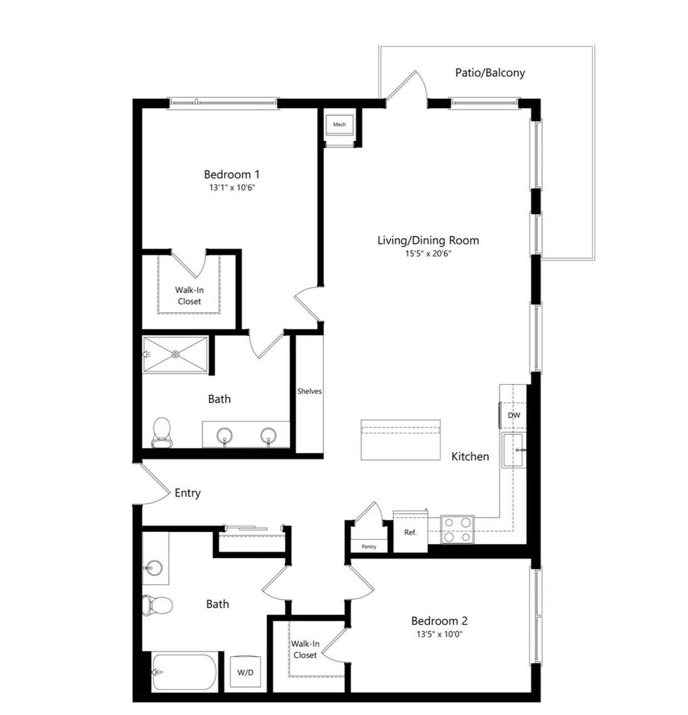 1 Bed, 1 Bath, 805 sq ftAvailable NowModel Gallery