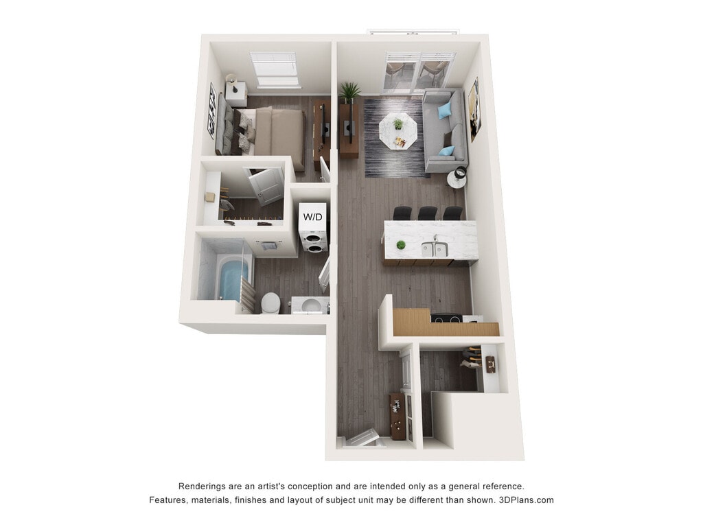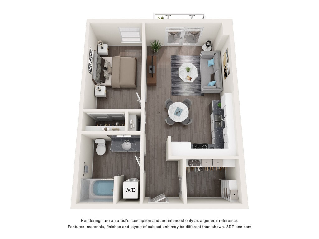 Apartment Model: Open 1 Bedroom AFrom $2,5641 Bedroom, 1 Bath, 613 sq ftAvailable NowFloor plans are artist's rendering. All dimensions are approximate. Actual product and specifications may vary in dimension or detail. Not all features are available in every rental home. Prices and availability are subject to change. Base rent is based on monthly frequency. Additional fees may apply, such as but not limited to package delivery, trash, water, amenities, etc. Deposits vary. Please see a representative for details.
