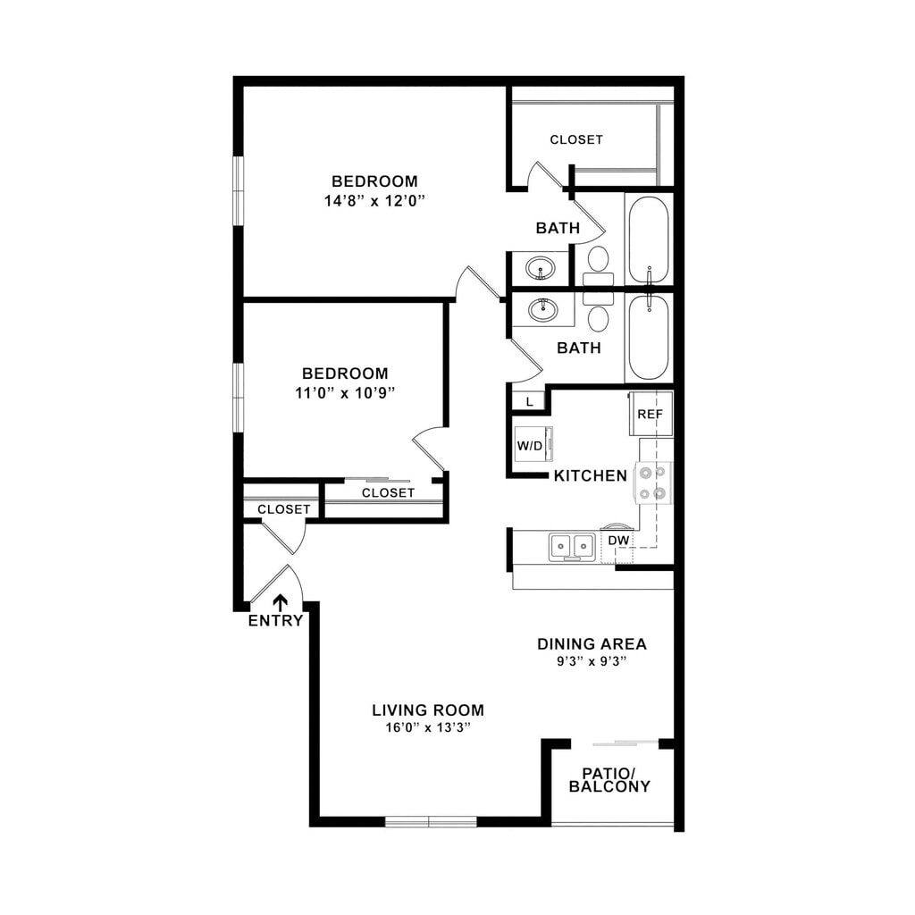 Apartment Model: B12 Bedroom, 2 Bath, 965 sq ftAvailable Now![]()
