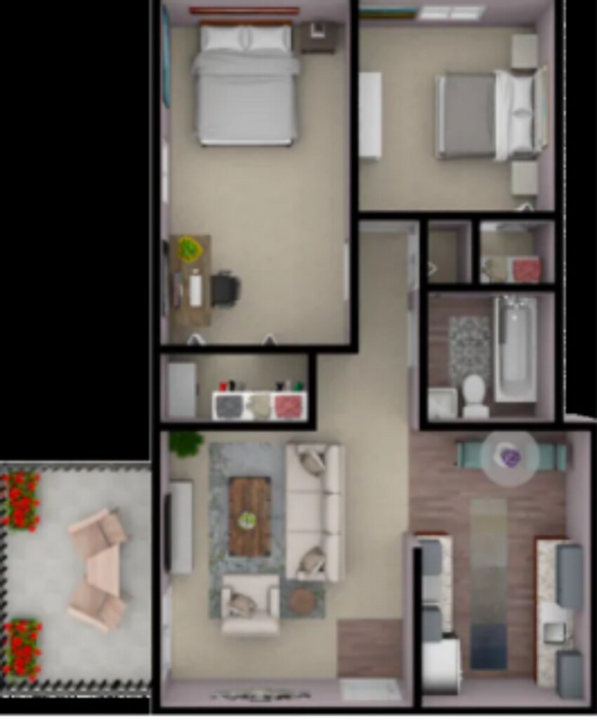 2 Beds, 1 Bath, 800 sq ftAvailability Details