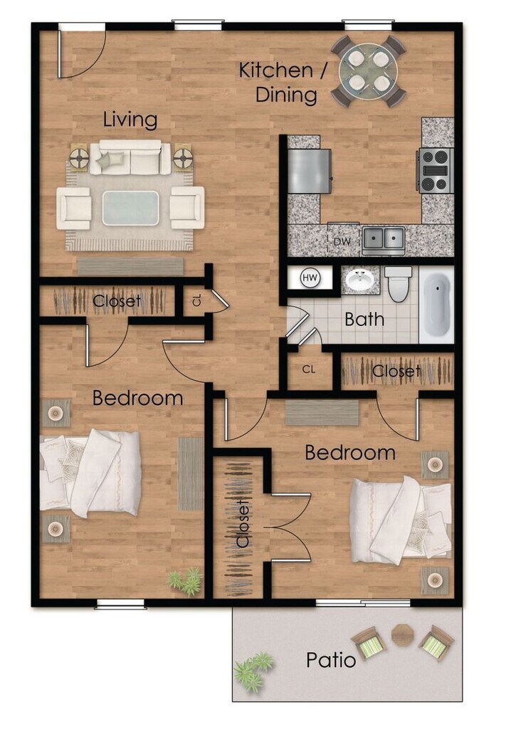 Apartment Model: 2 Bed 1 Bath Plan A DownFrom $9992 Bedroom, 1 Bath, 990 sq ftAvailable NowFloorplansPhotos![]()