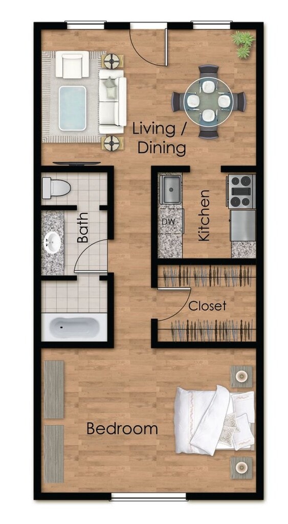 1Bed 1 Bath Plan 1B Down - Image 5 ![]()