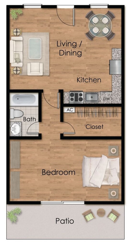 1Bed 1 Bath Plan 1C Down - Image 6 ![]()