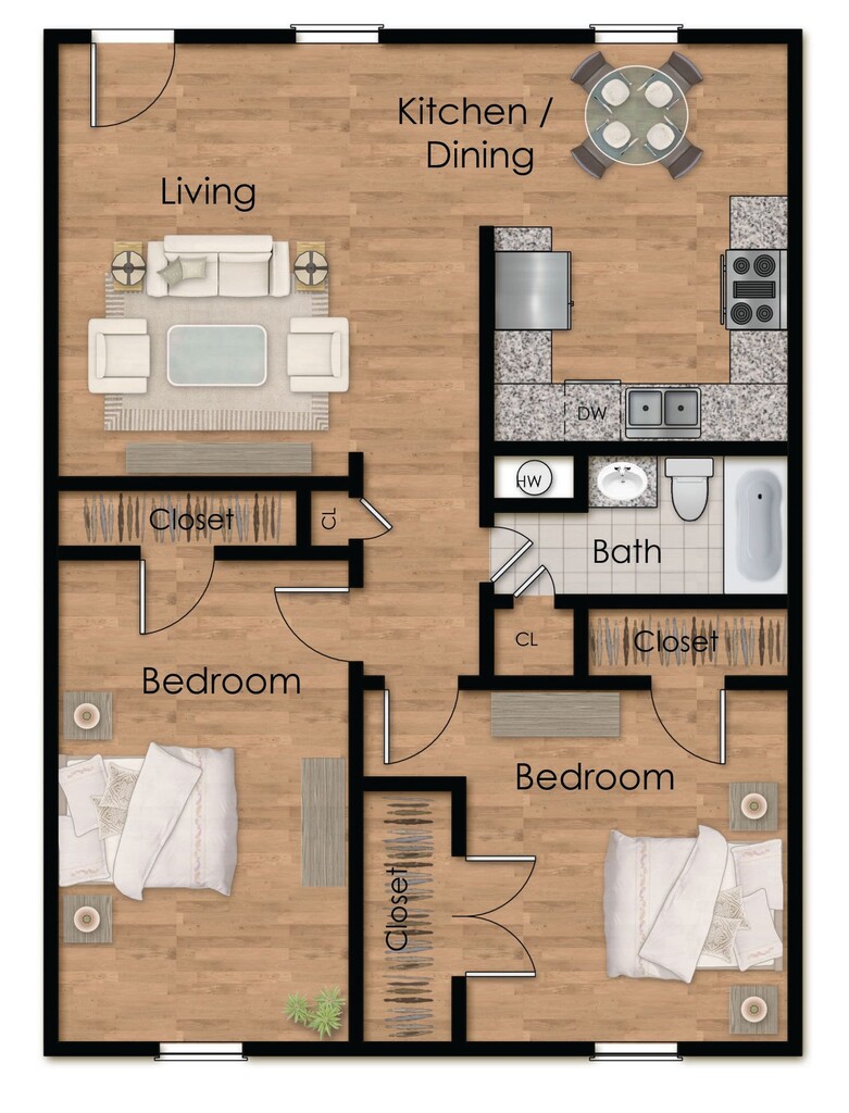2 Beds, 1 Bath, 990 sq ftAvailable NowModel Gallery