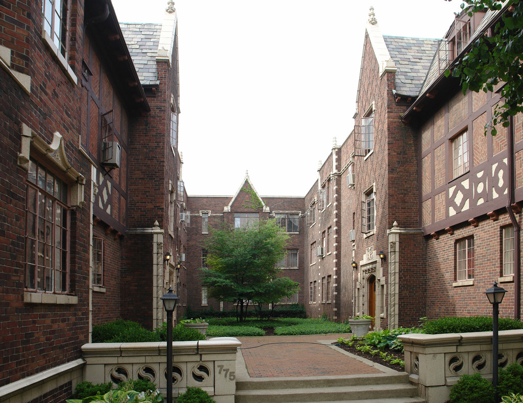 English Tudor style building with courtyard features laundry facility on site, door step recycling, off street parking, secured entrance building with your heat paid. Only a few minutes from Downtown on the #10 bus line. Cats are welcome, but please NO DOGS. *These images reflect the general character of the apartments, but might not be the exact unit for rent. Door Step Recycling Off Street Parking On Site Laundry Secured Building