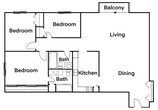 Apartment Model: 12From $1,5853 Bedroom, 2 Bath, 1219 sq ftUnavailable12 - Floorplan 1