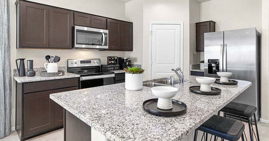 There’s no place like these new construction homes at Broadway North at Estrella Vista in Buckeye, AZ. Discover the difference in a professionally managed, private rental home – complete with attached garage, fenced yard, in-unit washer/dryer, stainless steel appliances, and granite countertops. As a resident of our community, you’ll enjoy a neighborhood feel, plus ample community green space, we also offer community walking paths, and a playground. Come see why Broadway North at Estrella Vista is more than a place to live – it’s a lifestyle to love. Self-guided tours are available every day. Visit our website to schedule.