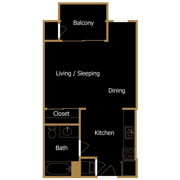 Studio, 1 Bath, 478-534 sq ftAvailable NowModel Gallery