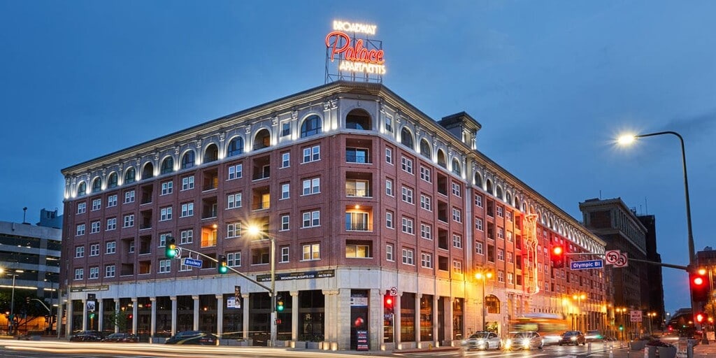 Welcome to your new home at the Broadway Palace Apartments in LA, luxury apartments in Downtown Los Angeles where elegance is re-defined. Step inside these fabulous Downtown Los Angeles apartments and become surrounded by the sophistication and aesthetic of The Roaring Twenties. Our new apartments in Downtown Los Angeles are complemented by all the amenities of the 21st Century. With luxury features that include gourmet kitchens, furnished balconies and patios, and spectacular skyline views, these Downtown Los Angeles apartments for rent are the latest installation to this historical, blossoming neighborhood. Whether you’re in LA or DTLA, the 1 and 2 bedroom apartments at Broadway Palace Apartments offer exceptional views inside and out. These apartments provide skyline city views accompanied by beautifully lush landscaped courtyards. Whether you want to spend your time relaxing by the pool, having a glass of wine on your private patio, recuperating with some TLC in the calming steam room, or singing to your heart’s content in the Karaoke Party Lounge, the Broadway Palace Apartments will become not only your home but your own private resort. These luxurious one and two bedroom apartments are available in both LA and Downtown LA. But if you feel like exploring outside the Broadway Palace Apartments you’ll be steps away from some of the best food and entertainment the city of Los Angeles has to offer. Your new home is conveniently located minutes from LA’s Fashion District, Little Tokyo, shops, eateries, and theaters. You'll swear you were back in the Jazz Age thanks to the meticulous craftsmanship and masonry of these luxury apartments in LA. Broadway Palace Apartments, the very best luxury apartments in DTLA, is a monument frozen in time and the only apartments in DTLA that have the class of today, tomorrow, and yesteryear.