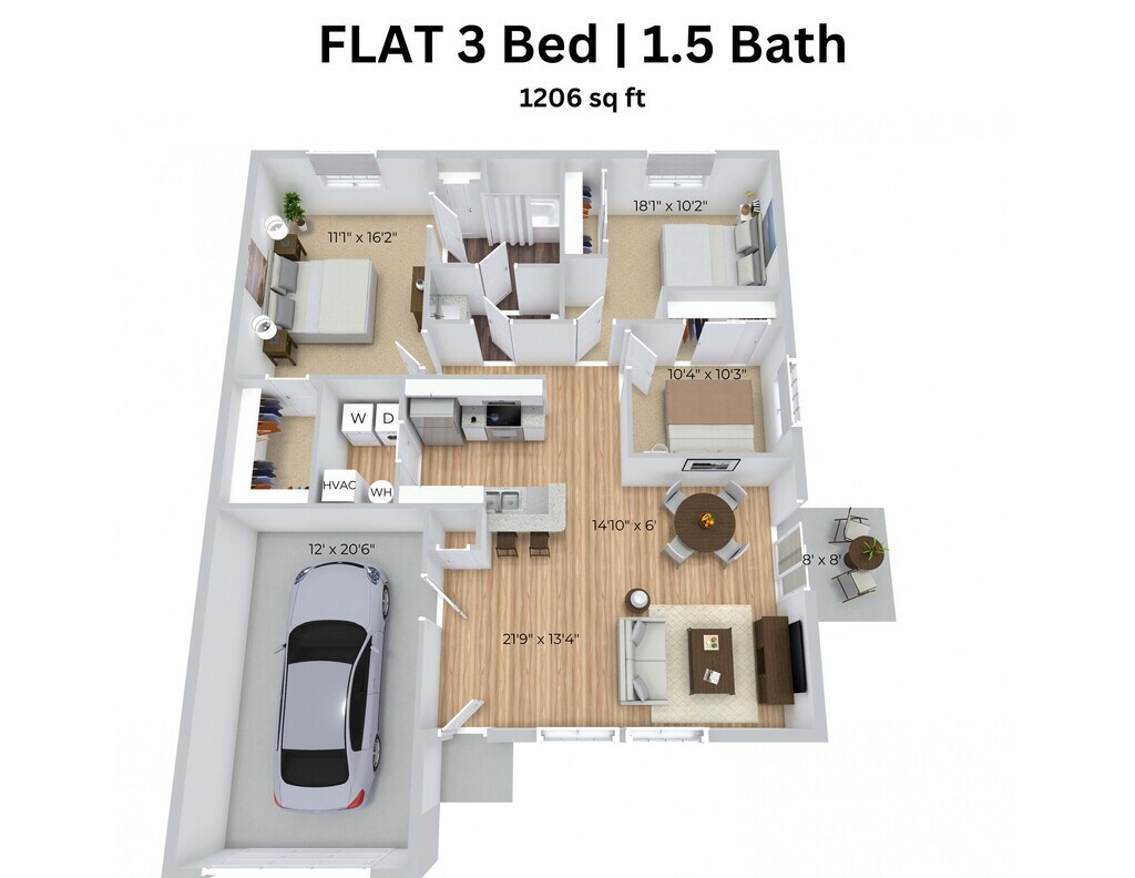 3 Beds, 1.5 Baths, 1206 sq ftModel Gallery