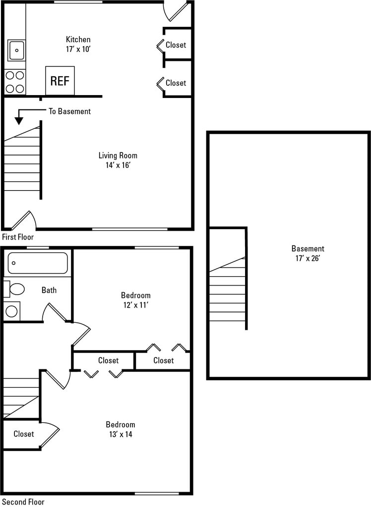 Two Bedroom 1.5 Bath Townhome - Floorplan 1 ![]()