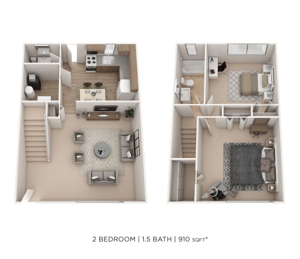 Apartment Model: Two Bedroom 1.5 Bath TownhomeFrom $1,4952 Bedroom, 1.5 Bath, 910 sq ftAvailable November 5, 2025![]()