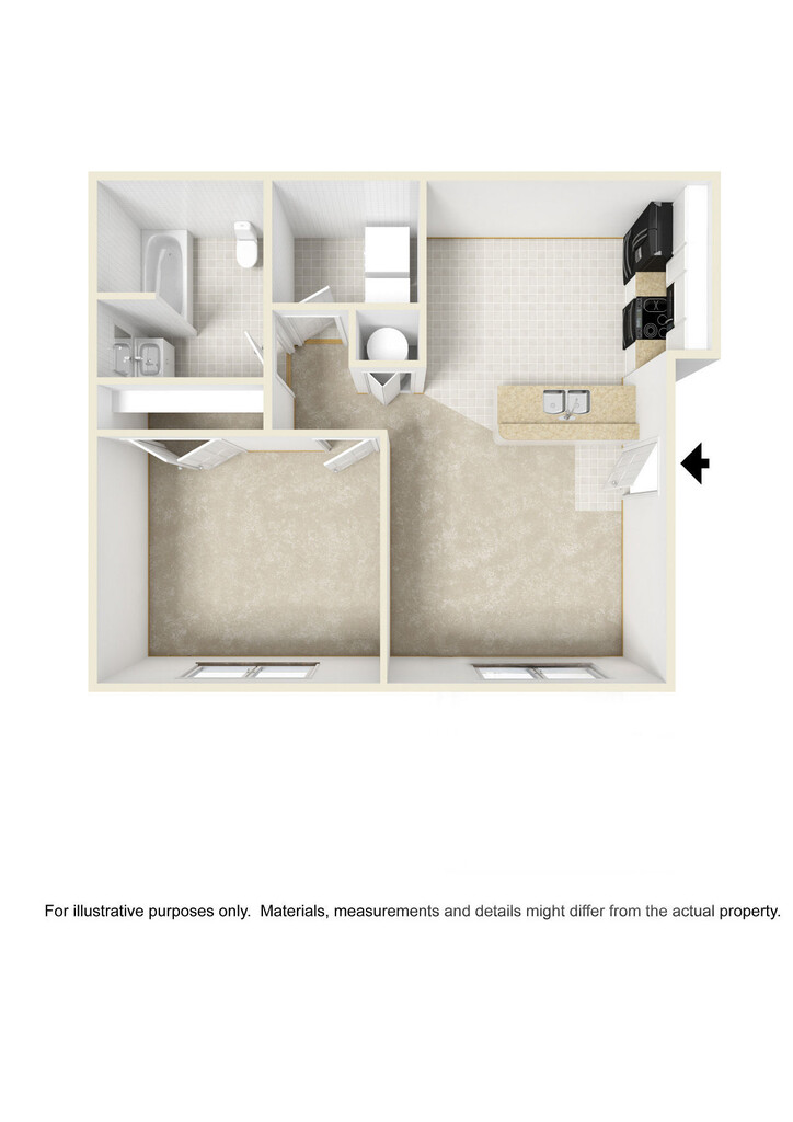 Apartment Model: One Bdrm/One Bath - 685From $1,1581 Bedroom, 1 Bath, 685-771 sq ftAvailable Now![]() - One Bdrm/One Bath - 685 - Floorplan 1 ![]() - One Bdrm/One Bath - 685 - Floorplan 2 ![]() - One Bdrm/One Bath - 685 - Floorplan 3 Apartment Unit: 148BR304Apartment Model: One Bdrm/One Bath - 685$1,1831 Bedroom, 1 Bath, 685 sq ftAvailable NowApartment Unit: 156BR306Apartment Model: One Bdrm/One Bath - 685$1,1581 Bedroom, 1 Bath, 685 sq ftAvailable NowApartment Unit: 161BR304Apartment Model: One Bdrm/One Bath - 685$1,2391 Bedroom, 1 Bath, 685 sq ftAvailable Now- One Bdrm/One Bath - 771- From $1,1581 Bed, 1 Bath, 771 sq ftAvailable Nov 11- Model Gallery- Floorplans- Availability Details- Price - Availability Date - Unit - Sq Ft - View Details - $1,163 - November 11, 2025 - 185BR304 - 771 - $1,158 - December 4, 2025 - 161BR303 - 771 - $1,178 - December 24, 2025 - 140BR103 - 771 - Model Amenities and Features- Unique Features- Electric Heating & Air Conditioning