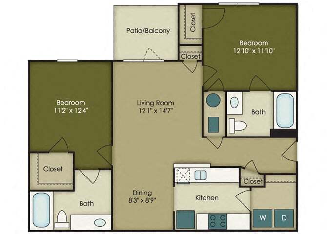 2 Beds, 2 Baths, 1053 sq ftModel Gallery