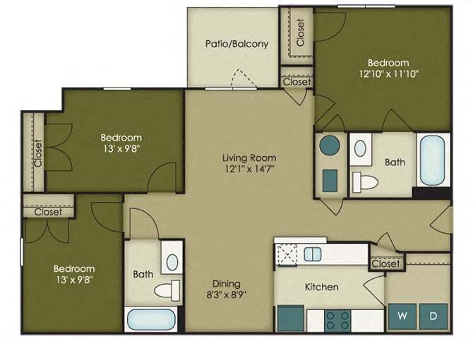 3 Beds, 2 Baths, 1143 sq ftModel Gallery
