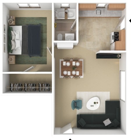 1 Bed, 1 Bath, 400 sq ftModel Gallery