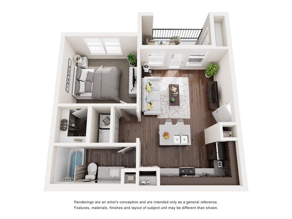 1 Bed, 1 Bath, 744 sq ftModel Gallery