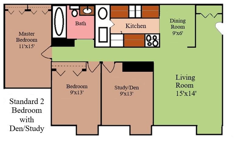 Apartment Model: Standard Two BedroomFrom $9752 Bedroom, 1 Bath, 800 sq ftAvailable Now![]()