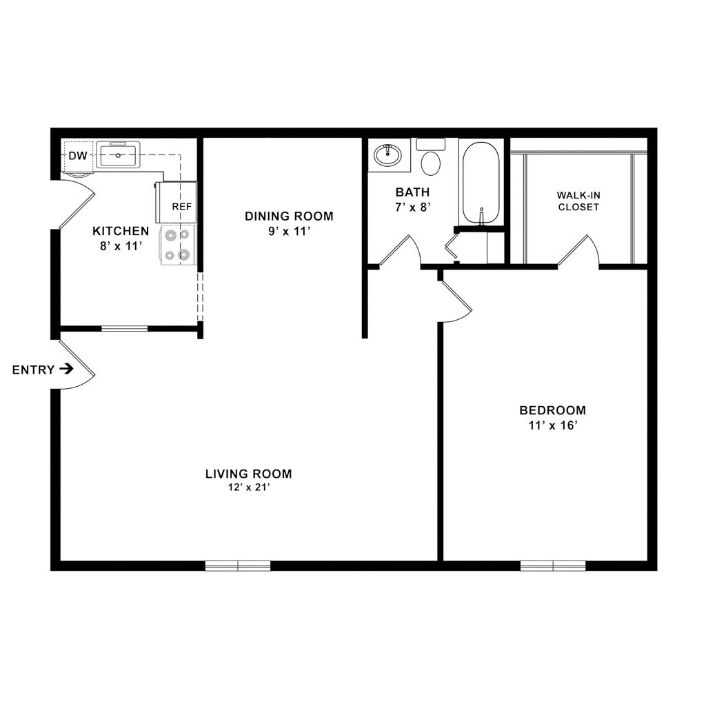 1 Bedroom - Floorplan 1 ![]()
