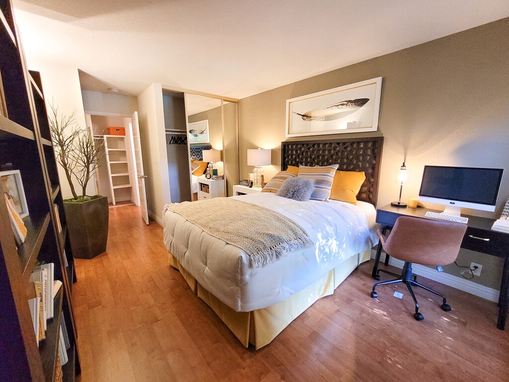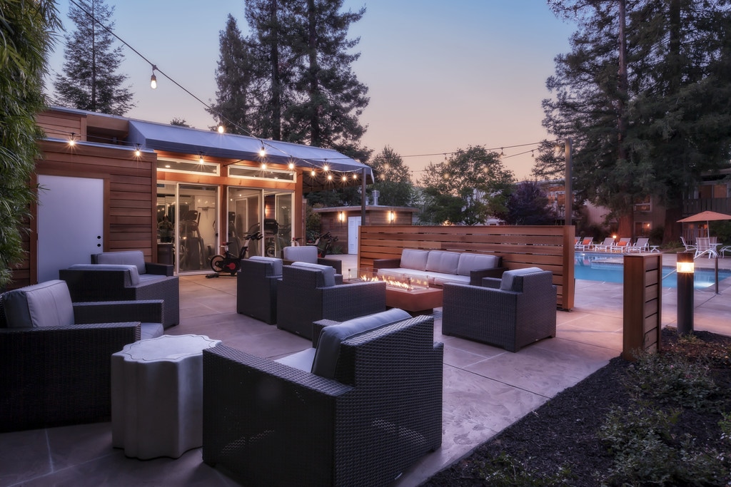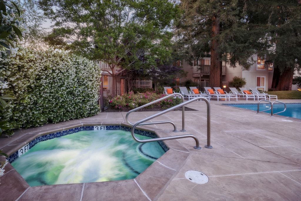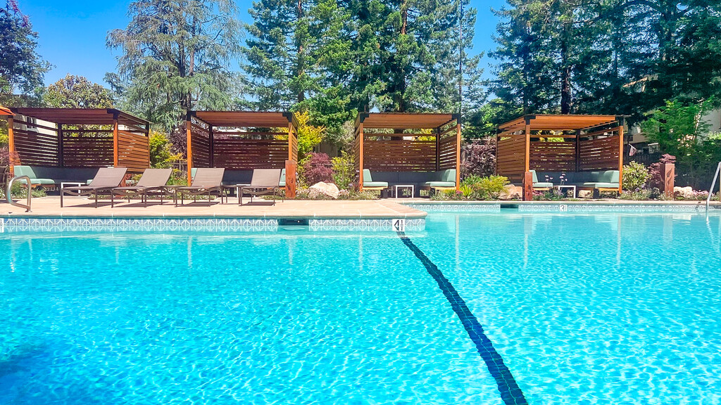If you’re looking for West San Jose apartments, we invite you to consider The Brookdale Apartments, an intimate apartment community in a beautiful setting. Cupertino School District, our West San Jose apartment community is just blocks away from parks, recreation, restaurants and shopping. Enjoy the view of our expansive lawns and grand redwoods from your spacious patio or balcony. Inside your home, an attention to detail offers comfort and style - granite kitchen and bathroom counters, honey maple wood flooring, new custom wood cabinetry, air conditioning and decorator ceiling fans, the latest stainless-steel appliances, and new Milgard dual-pane windows and doors for energy efficiency and quiet. Enjoy our resort-style amenities and relax at the swimming pool, spa, the ambiance of the glow of the fire pit at the Fireplace Lounge, work out in the state-of-the-art fitness center or exercise outdoors on the spin cycle patio. Poolside cabanas with WiFi and USB outlets for relaxation or work outdoors. A tot lot, chess tables & cornhole toss can provide both relaxing and active options for our younger residents. Experience the opportunities of life in the heart of Silicon Valley and come home to the luxurious tranquility of The Brookdale Apartments.