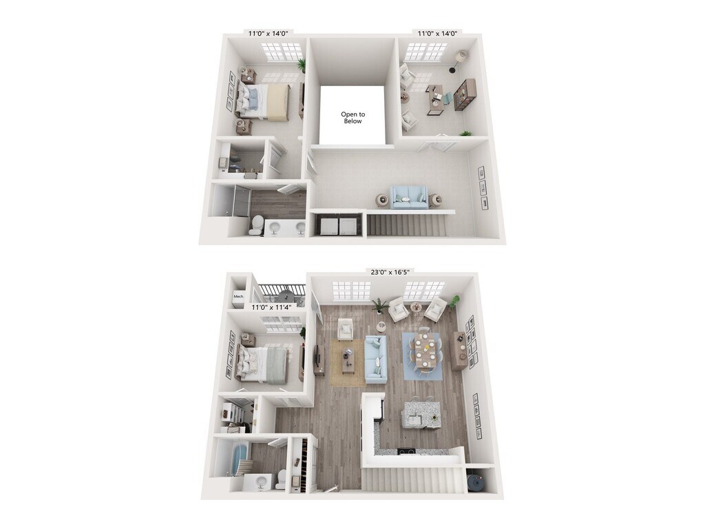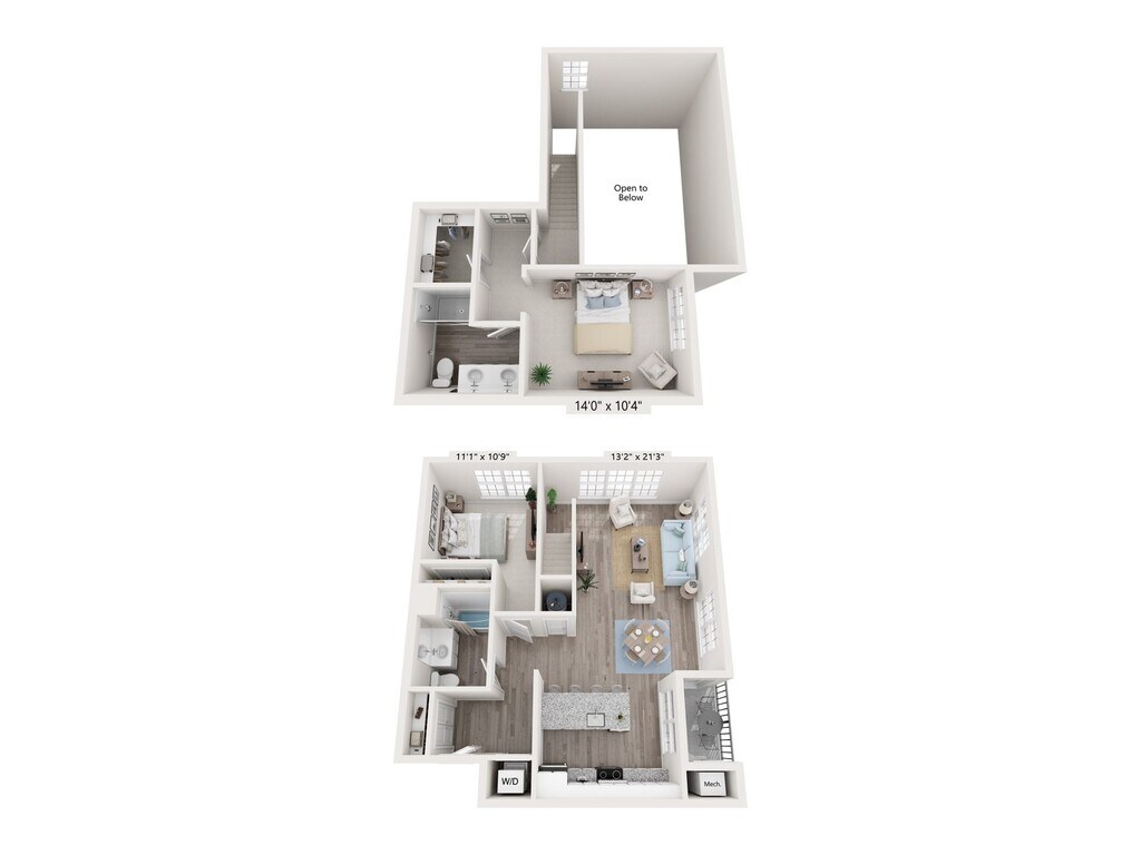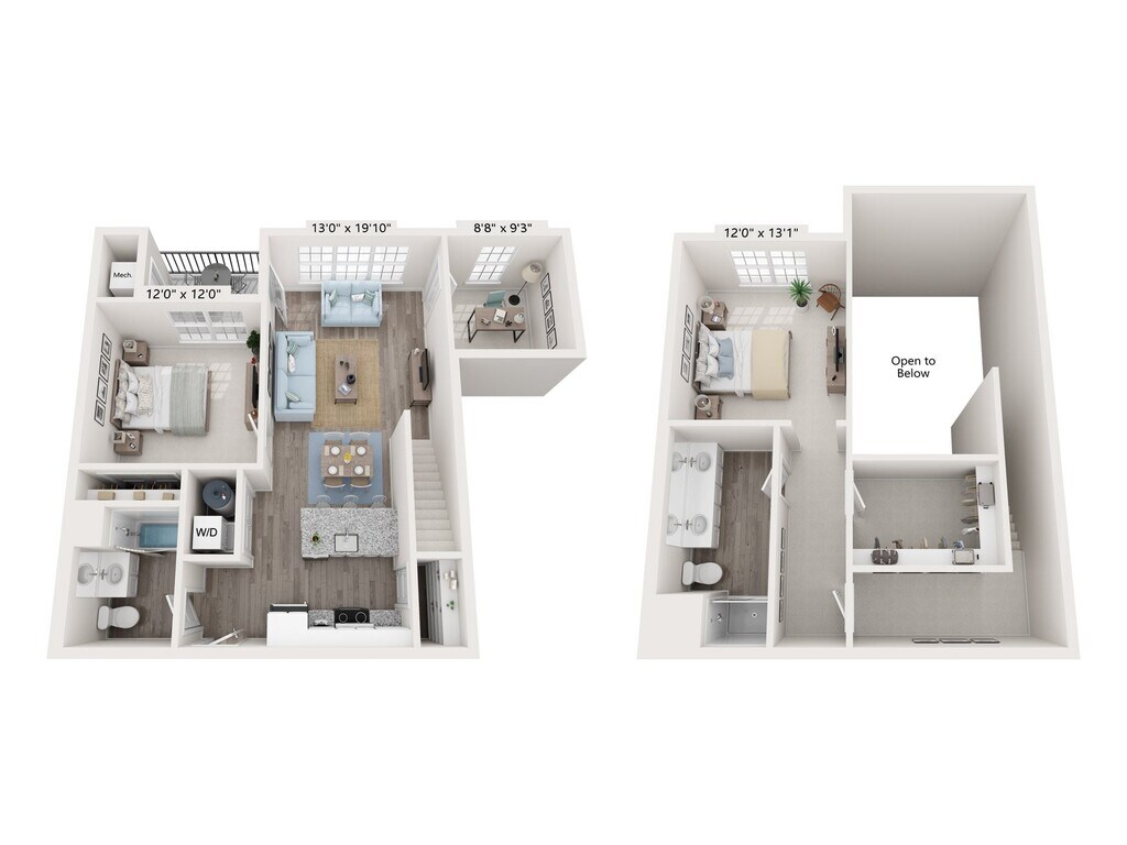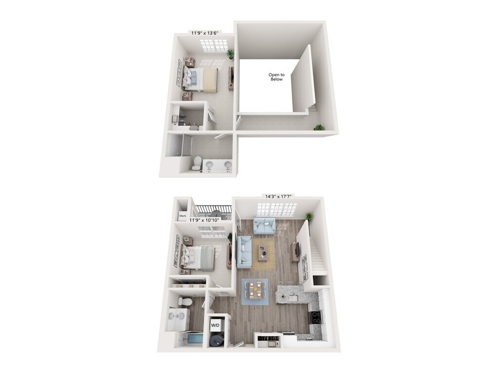 One Bed Two Bath Loft - Floorplan 1 2 Bedrooms