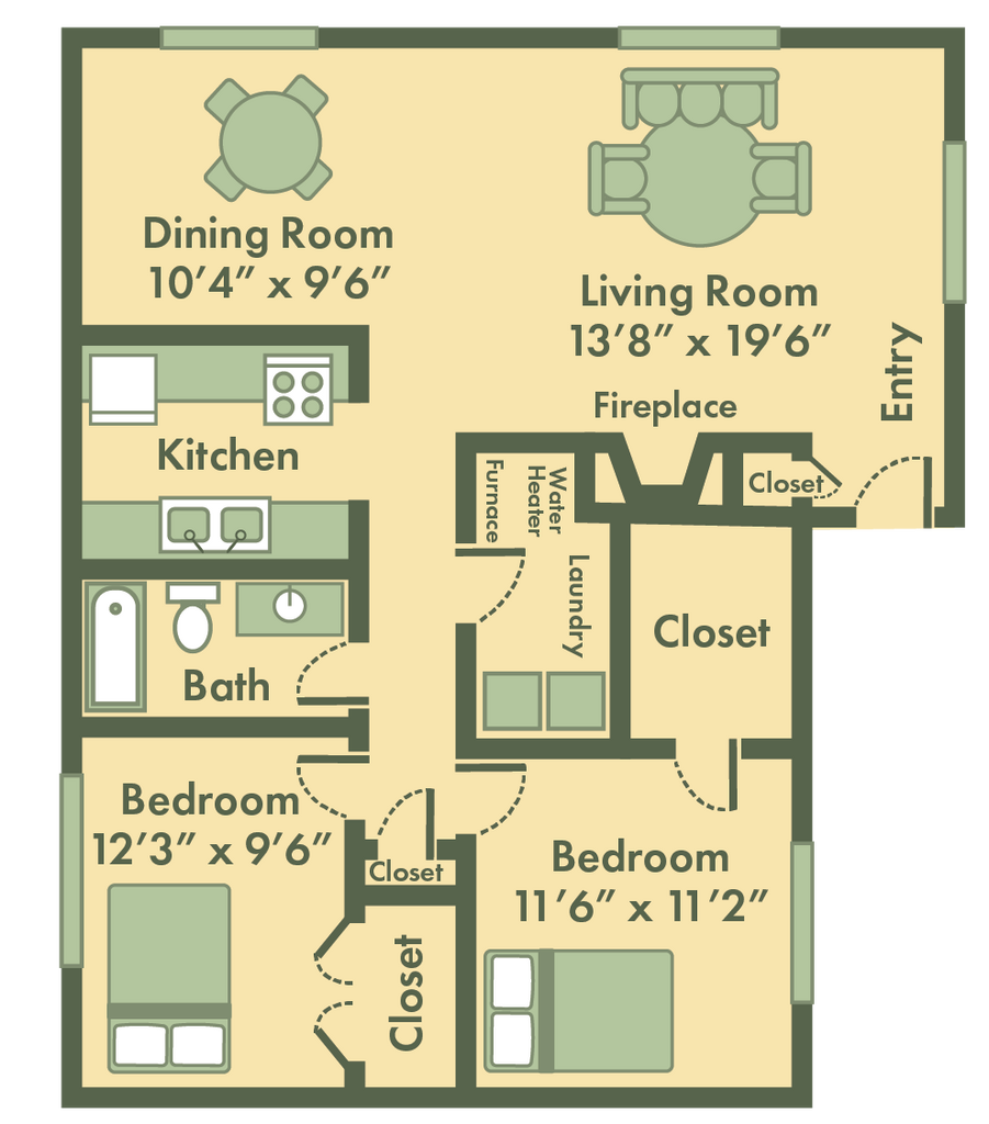 Apartment Model: AtwoodFrom $9902 Bedroom, 1 Bath, 1050 sq ftAvailable NowFloorplansPhotos![]()