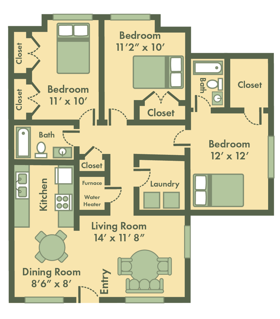 - Oversized 1, 2 and 3 Bedroom Apartments
