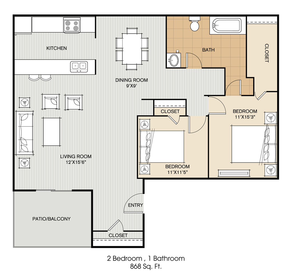 2 Beds, 1 Bath, 868 sq ftAvailable Dec 6Model Gallery