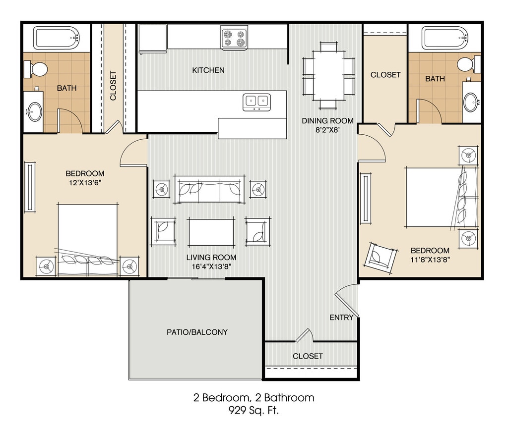 2 Beds, 2 Baths, 929 sq ftModel Gallery