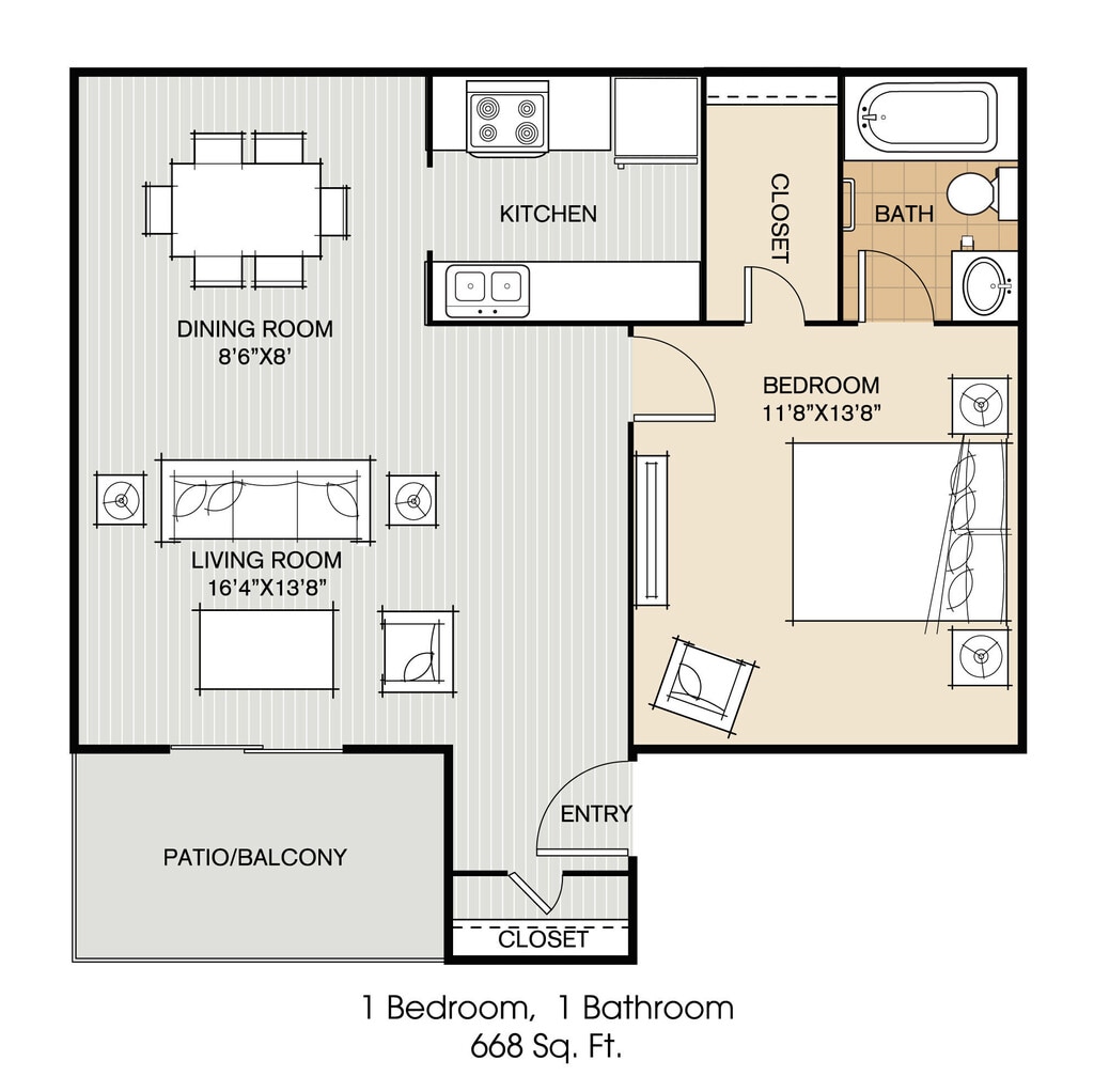 Apartment Model: A11 Bedroom, 1 Bath, 668 sq ftAvailable Now![]()