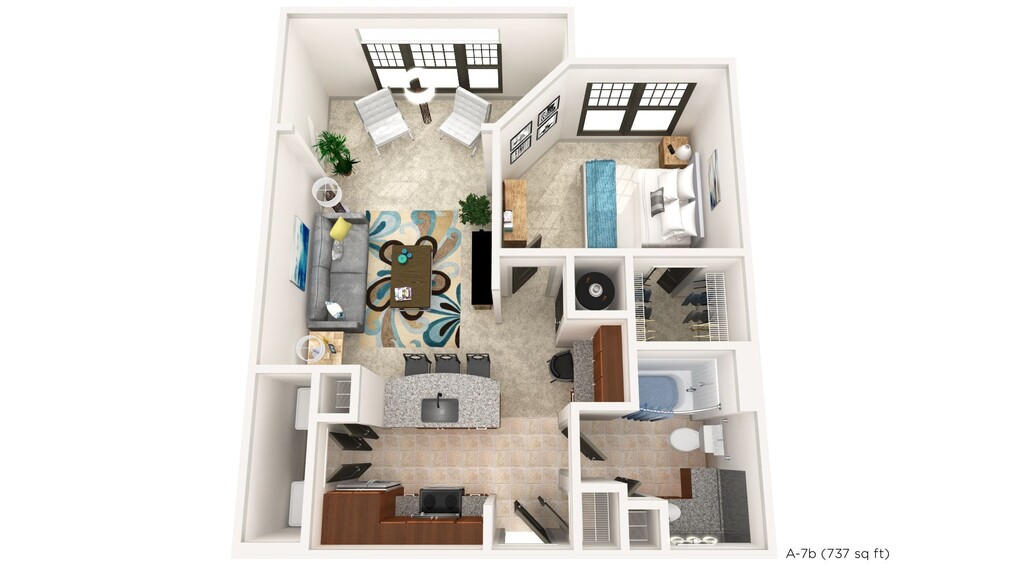 Apartment Model: A7B$1,7901 Bedroom, 1 Bath, 737 sq ftUnavailable![]()