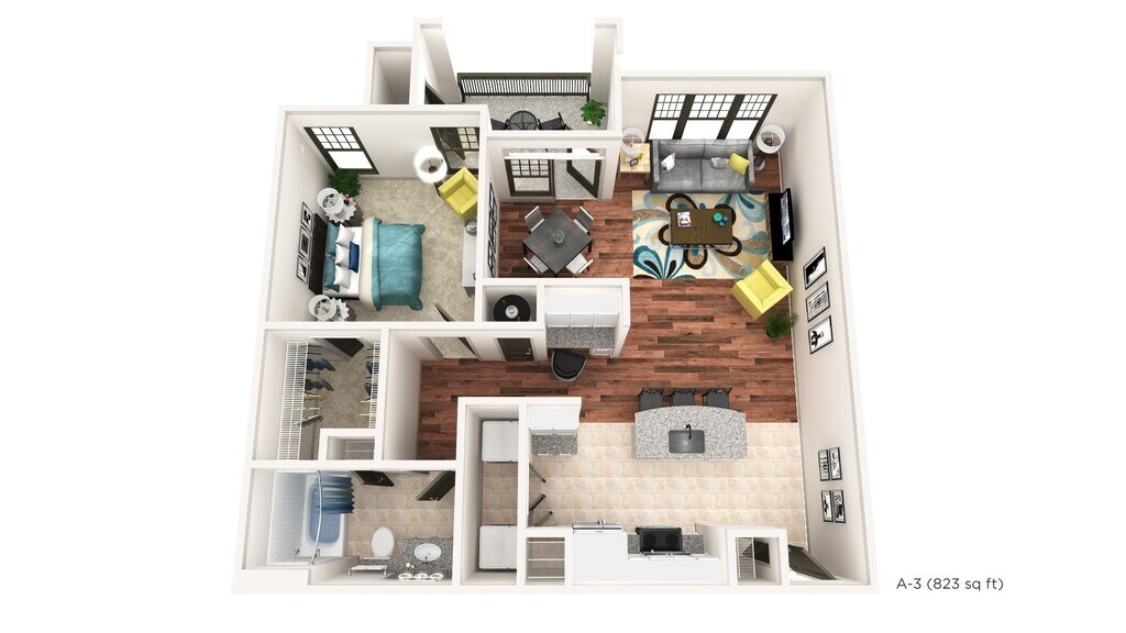 Apartment Model: A3From $2,0781 Bedroom, 1 Bath, 823 sq ftAvailable November 28, 2025![]()