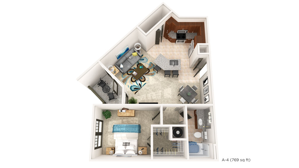 A4 - Floorplan 1 Apartment Unit: 6206Apartment Model: A4$2,0401 Bedroom, 1 Bath, 769 sq ftAvailable December 21, 2025Floorplan A7A