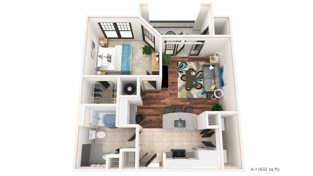 Apartment Model: A1$1,8051 Bedroom, 1 Bath, 632 sq ftAvailable Now![]()