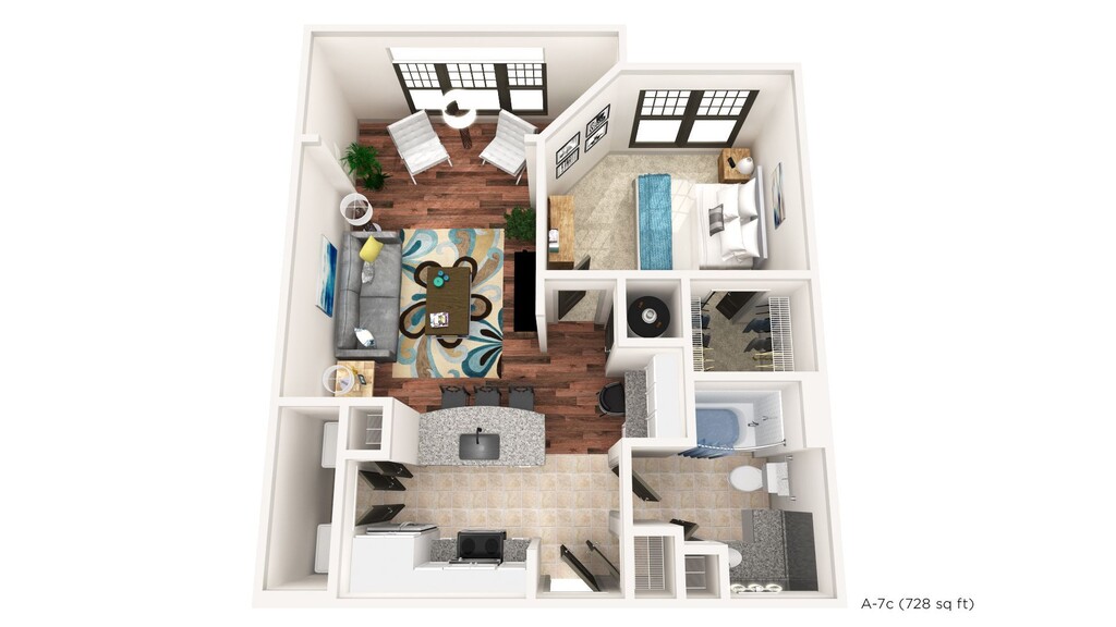 A7C - Floorplan 1 Apartment Unit: 3408Apartment Model: A7C$2,0071 Bedroom, 1 Bath, 728 sq ftAvailable November 30, 2025Floorplan A4
