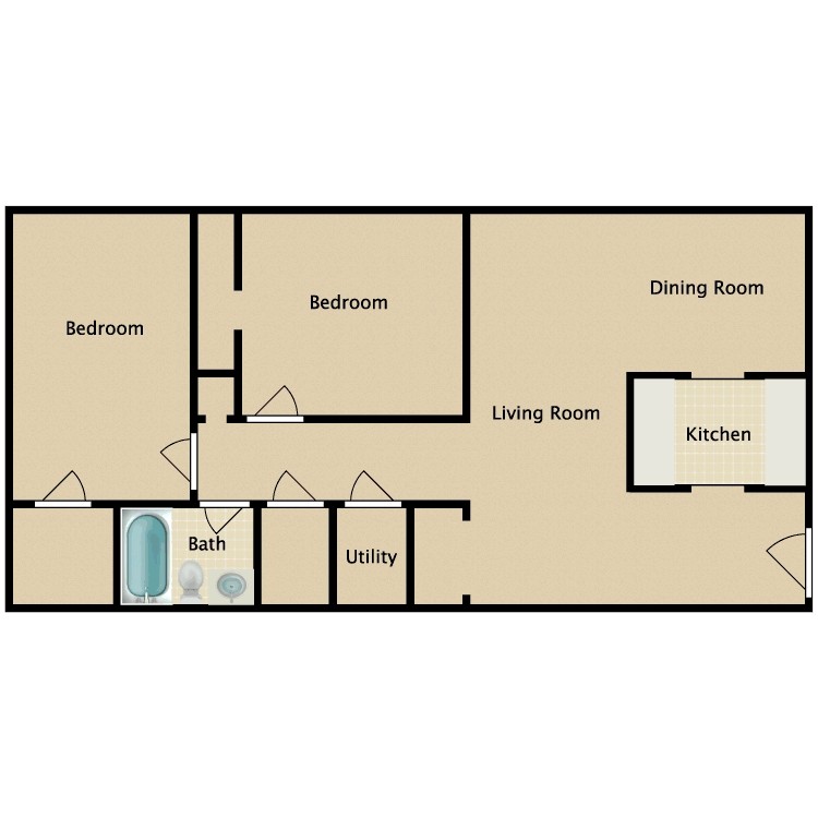 Apartment Model: 2 Bed 1 Bath$9752 Bedroom, 1 Bath, 880 sq ftAvailable Now![]()