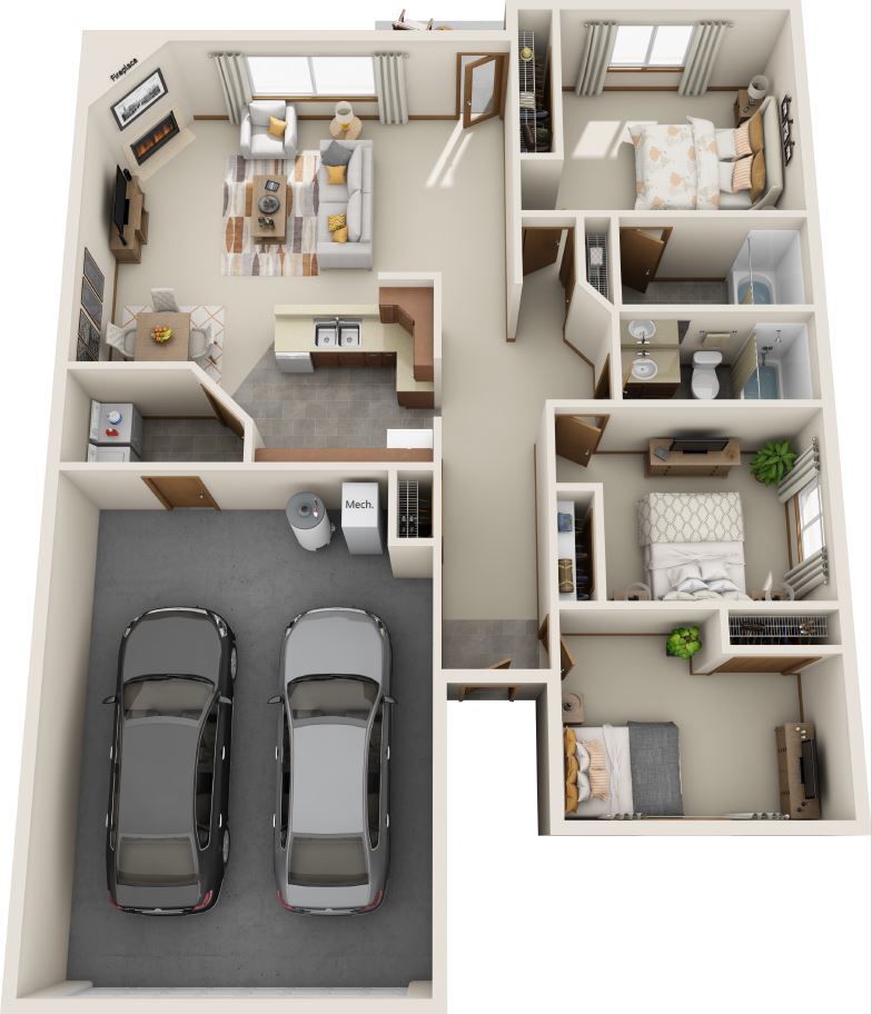 3 Beds, 2.5 Baths, 1600 sq ftLargest 3 BedroomThis is the largest 3 Bedroom at this PropertyModel Gallery